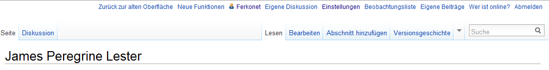 - Navigation: Wir haben die Navigation zum Lesen und zur Bearbeitung der Seiten verbessert. Die Reiter am Kopf jeder Seite zeigen klarer, ob du eine Seite oder eine Diskussionsseite liest und ob du eine Seite liest oder bearbeitest.